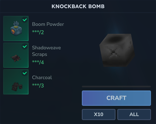 While gliding, hitting Ability 2 with a knockback bomb in your inventory consumes one bomb and applies an instant speed boost to your glider. The boost strength is controlled by knockbackBombBoostStrength in the Glider Settings.